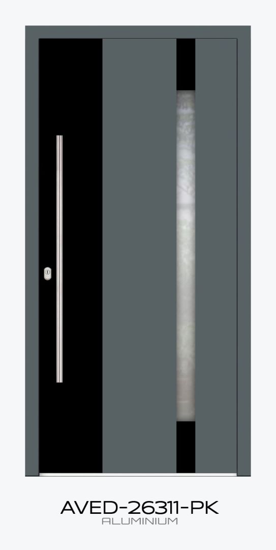 Hliníkové dverné výplne s vysokou tvarovou stálosťou a odolnosťou voči poveternostným vplyvom.